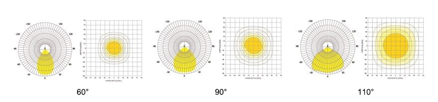 Biggest unique advantage is the adjustable beam angle 60°/90°/110° which can be changed easily by finger twist. Now, one light is suitbale for all projects, one light has 3 beam angles!